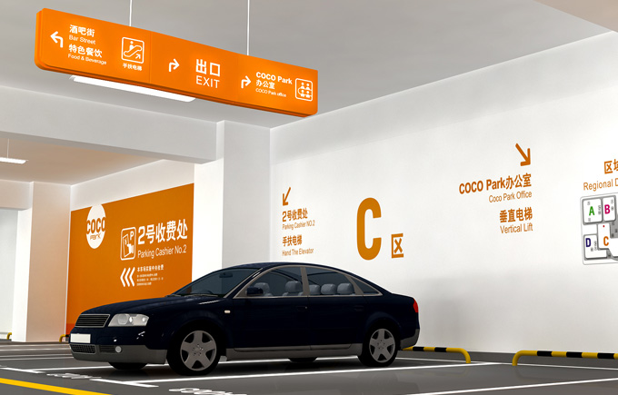 大型停車場導向標識系統規劃設計 隨著社會經濟的迅速發展,城市汽車的擁有量不斷增加,汽車在給人們帶來交通便利的同時,由于停車難、找車難等問題也給人們的工作生活帶來了諸多不便,尤其是商場、酒店、醫院等公共建筑下設置的公共地下停車空間,因為一般車位規模較大,地下車庫的層數也不盡相同,所以地下停車場是最難辨別方位的場所之一,因此標識導視系統的規劃設計顯得尤為重要。好的地下停車場導向標識系統設計不僅能讓人們更有方向感,同時也可以給人專業、放心的踏實感。下面我們零貳捌成都廣告公司介紹一下大型停車場導向標識系統:
