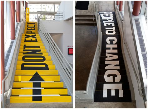 3. 每天上下班的必經之路就是樓梯,怎么能讓它們空著呢?這其實給咱們傳播企業文化提供很好的創作空間。這估計是員工最愛走的樓梯了。