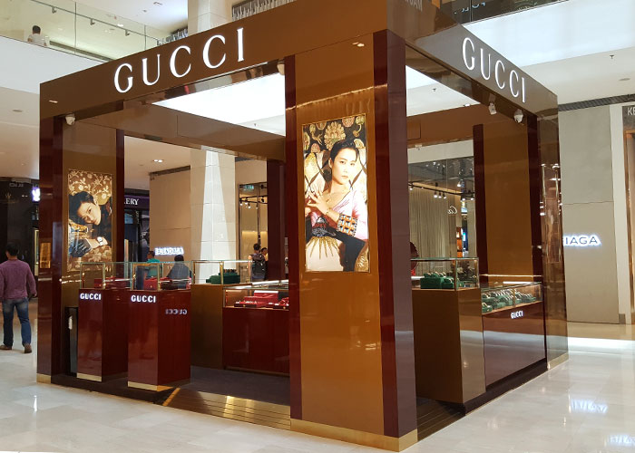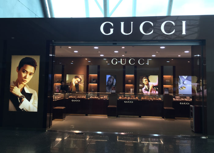 奢侈品牌店面門頭招牌設(shè)計(jì)圖片欣賞 古馳(Gucci),1921年創(chuàng)立于佛羅倫薩 ,是全球奢侈品品牌之一 ,借由其獨(dú)特的創(chuàng)意和革新,以及精湛的意大利工藝聞名于世。古馳隸屬于開云集團(tuán) (Kering Group)。開云集團(tuán)旗下?lián)碛斜姸鄻O具影響力的精品、運(yùn)動(dòng)及生活方式品牌,是時(shí)裝與配飾行業(yè)的領(lǐng)軍者。古馳的產(chǎn)品包括時(shí)裝、皮具、皮鞋、手表、領(lǐng)帶、絲巾、香水、家居用品及寵物用品等,中文譯作古馳。