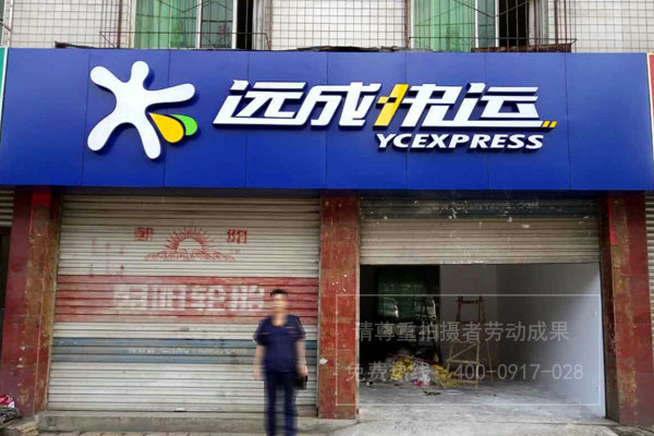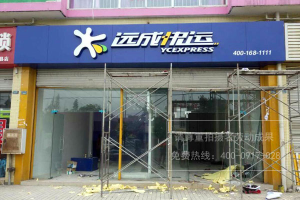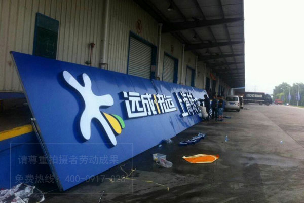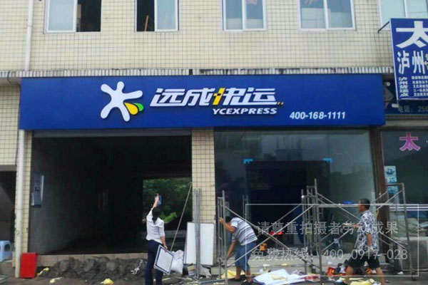 遠成快運各網點門頭招牌發光字制作安裝現場照