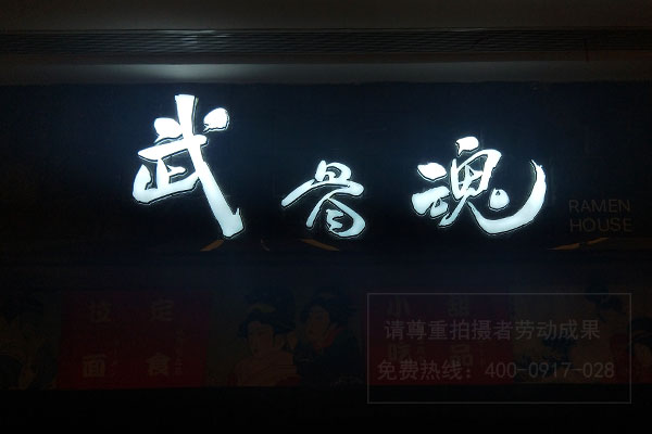 3.不銹鋼板或鋁板與丙烯酸板的組合,內置LED光源,產生三維發光效果,即三維發光字符。