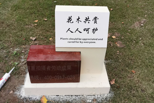 城市公園花草牌制作是城市環境保護的鬧鐘,在關鍵時刻提醒著您“愛護環境、人人有責”。在公園里小區的綠地上,我們隨處看到的警示語“請勿攀登”“請勿踐踏”在河道邊“請勿嬉水”等......這些警示標語以提醒人們的的注意。