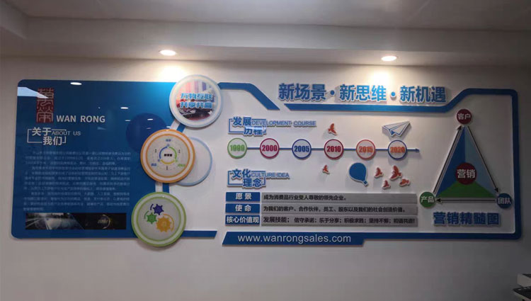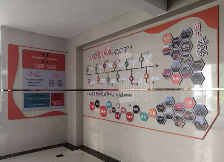 公司發(fā)展歷程文化墻制作原材料主要是:壁紙、亞克力板、不銹鋼板等