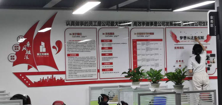 公司文化墻是用以宣傳策劃公司,宣傳策劃公司文化藝術,推動公司品牌文化建設及其協助公司提高企業形象的墻。清理墻面風景是適用公司精神文明建設造就的合理媒介,另外還可以改進公司自然環境的清理工作能力。合理融合公司品牌形象和知名品牌。敘述一個和睦,文明行為,歷史人文和造型藝術的公司自然環境。公司文化墻是為了更好地表述公司的企業品牌形象,傳遞公司的文化藝術,展現公司的整體實力,讓顧客留有刻骨銘心的印像,提升公司的信譽。因而,哪些的企業品牌形象展現給顧客,文化墻就飾演十分關鍵的人物角色。當顧客進到公司時,他對公司的掌握起源于公司文化墻和公司自然環境。不論是大中型公司還是中小型公司,國有制公司還是個人公司,都必須在顧客眼前塑造優良的品牌形象。