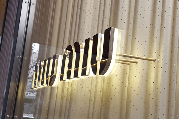 特點二:不銹鋼吸塑字表層呈圓鼓面,弧形壯,層次感強,更能顯示信息出制做標志的級別,在精典不銹鋼字的基本上,貼金箔字也是這般,表層更為的明亮,提高企業的地位和品牌形象;