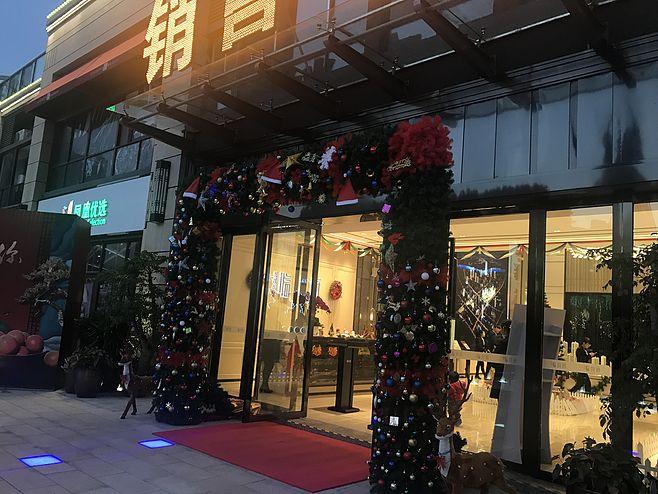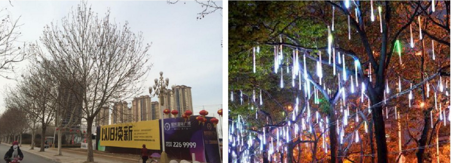 售樓處門前路邊樹木掛滿流星雨燈