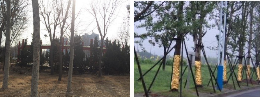 ? 售樓處門前樹干底部包金布