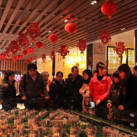 ? 沙盤區(qū)域包裝中國結(jié)、紅燈籠、如意結(jié)等春節(jié)飾品