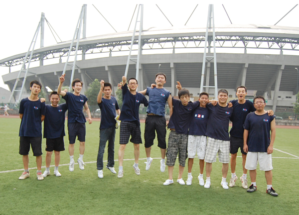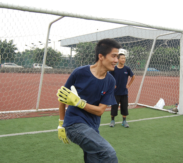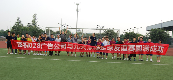 但是我們也并不氣餒,重新開始,發球,組織進攻,場邊的啦啦隊們開始喊起:028,加油!028,加油!我們場上的隊員們也更加有了沖勁,奮力奔跑,不怕疲勞,汗水濕透了衣背,不斷尋找著機會,而九天家私足球隊的實力也的確非常強大,一次又一次地挫敗了我們的進攻。但是大家的努力終于沒有白費,下半場剛開始幾分鐘,我們的足球隊長,中鋒徐宏彬接中場熊仁汀的直傳球后,帶球過了對方后衛,和前衛朱思剛傳球配合,突入對方禁區,打門,球進了!球進了!現場的氣氛在這一刻沸騰了!大家都跳了起來,熱烈地擁抱!攝像機、照相機在這一刻向徐宏彬聚焦,記錄下這一激動人心的時刻!我方的第一粒進球給大家帶來了極大的振奮,鼓舞了大家的士氣!而這也更加激起了九天家私足球隊的斗志!他們發出球,又向我方沖來……