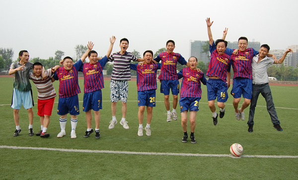 真是你方唱罷我方登場,雙方在這種激烈的拼搶當中不斷地轉換著攻防,好戲連連看,精彩永不斷!90分鐘的比賽就在這激烈、精彩、熱鬧、友好的氣氛中上演著,隨著主裁判的3聲哨響,比賽結束了,球員們一個個都累得不行了,但是心里卻是非常的高興,最后雙方在一起合影留戀,互相擁抱祝賀,真希望這樣精彩的比賽能夠再來一場……
