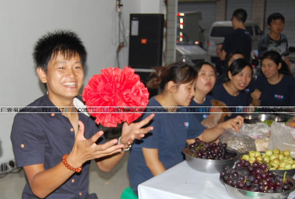 游戲又開始了,擊鼓一響,大紅花又在人群中傳遞著,哈 哈 哈 哈 這次大紅花可落在我們業務部歌王王代剛的身上,他毫不猶豫為大家獻唱了一曲“朋友”.接著花又落在了設計部,雕刻部,寫真部,行政部,噴繪部,等等員工的身上。整個場面人氣高漲,人聲鼎沸,熱鬧非凡,掌聲此起彼伏,大家笑著,吃著,玩著,吆喝著,每個員工的臉色都洋溢著幸福,高興,快樂的景象。每個上臺表演者都有獎品發送。夜深了,大家還依依不舍…..