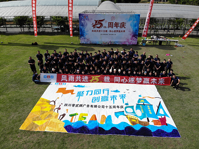 二零二二年五月一日,四川零貳捌廣告有限公司十五周年慶在四川飛越研學基地隆重舉行,嘉賓與為公司付出辛勤勞動的零貳捌同事們一起歡聚一堂,共同慶祝零貳捌廣告公司十五歲生日。