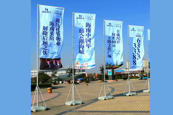 注水旗加工制作 注水旗顧名思義就是可以注水的。一般3米注水旗底座可注水12斤左右。注水旗是現(xiàn)在廣告旗的一種,用于戶外廣告或者展會現(xiàn)場。注水旗美觀耐用,使用方便,是極佳的廣告展覽器材。適用于商場、酒店、4S店、展館等門店廣告宣傳。