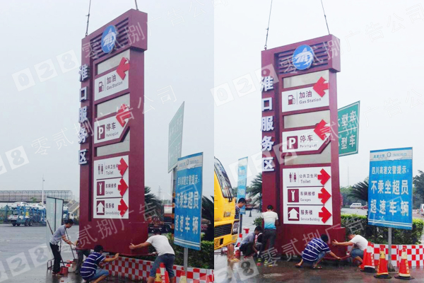 服務區是高速公路上必不可少的設施,能夠為高速公路的使用者提供服務,對保障行車安全、保證運輸效率、緩解駕駛員在生理上的過度疲勞和車輛使用上的極限狀況十分重要。隨著高速公路通車里程的不斷延伸、客流量的不斷增長,必然要求服務區擴大服務項目的種類、數量等等,從而形成特殊的經濟區域,其產業價值的重要性正日益受到重視。每一個服務站都會制作導視標牌和發光字,并且離服務區幾百米遠之外路面上設置指路標識牌提醒人們前方有服務站。所以服務區的導視標識的制作是非常重要的。