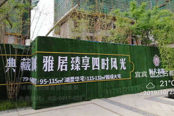 現(xiàn)在房地產(chǎn)項(xiàng)目圍墻圍擋廣告制作多是采用假草坪綠植來進(jìn)行制作,這種用植被組成的工地圍擋也稱為綠籬式圍擋(