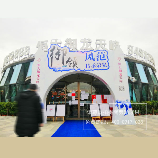 恒大御龍天峰地產樓盤銷售大廳樓頂大字/入口處KT板拱門制作安裝