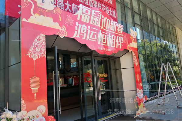 恒大城公園城銷售中心入口處鼠年迎春KT板拱門氛圍營(yíng)造布置