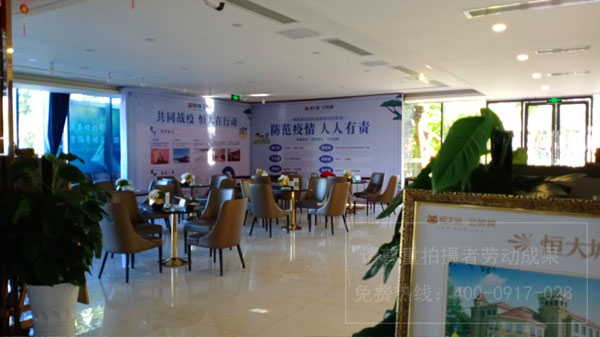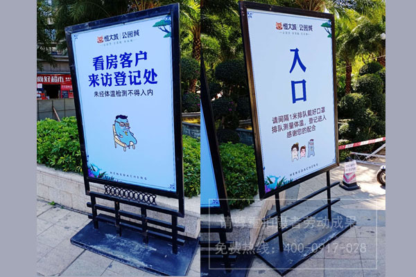 恒大城公園城銷售中心疫情防護(hù)溫馨提示門型展架制作安裝