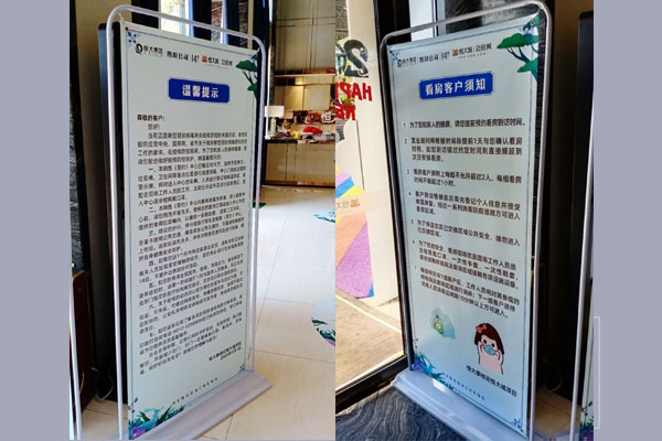 恒大城公園城銷售中心疫情期間看房客戶來(lái)訪登記提示標(biāo)識(shí)牌制作安裝