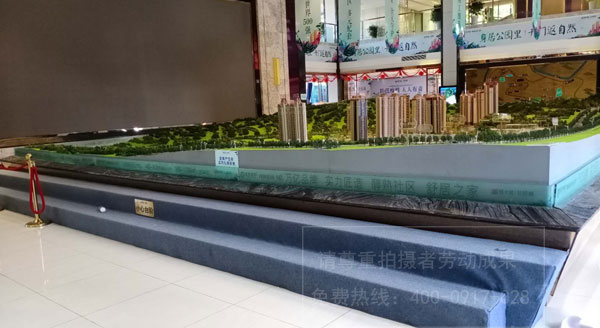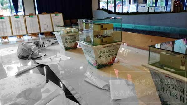 地產(chǎn)樓盤營(yíng)銷中心沙盤外圍玻璃磨砂貼廣告制作安裝