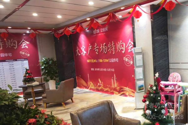 地產(chǎn)樓盤營(yíng)銷中心吊旗/展臺(tái)廣告畫面制作安裝