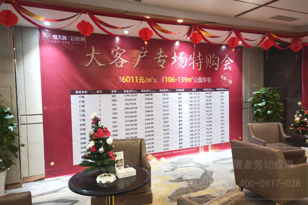 恒大城公園城大客戶專場(chǎng)特購(gòu)會(huì)宣傳墻體噴繪廣告制作安裝