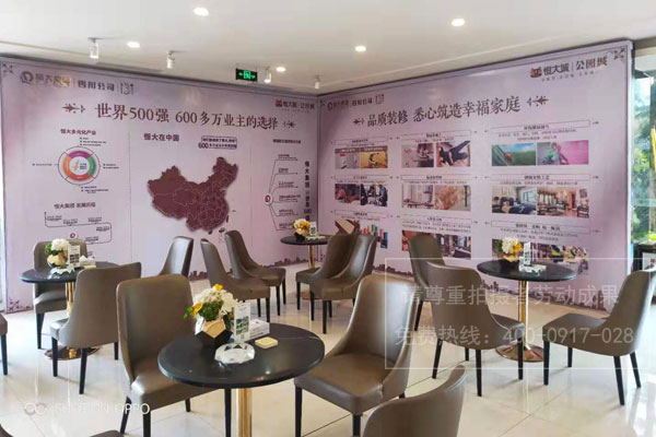 恒大城公園城項(xiàng)目營(yíng)銷中心戶型沙盤展臺(tái)廣告畫面制作安裝