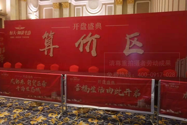 恒大地產御景半島開盤盛典算價區背景墻桁架搭建/路欄噴繪畫面制作安裝
