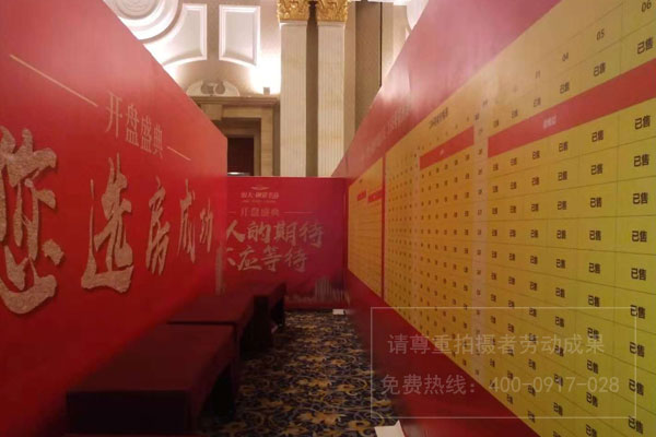 成都地產樓盤項目開盤廣告物料制作安裝布置首選四川零貳捌廣告公司,開盤盛典廣告物料布置涉及客戶簽到區、客戶等候區、算價區、房源表、房源公示欄等桁架搭建畫面噴繪制作安裝。實際現場照片就跟著028現場施工人員的視覺一起來看看吧。
