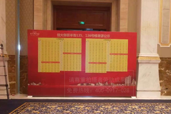 恒大地產御景半島開盤盛典房源公示欄看板桁架搭建噴繪畫面制作安裝