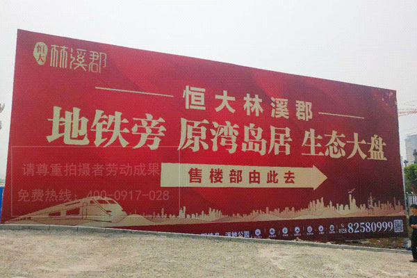 成都房地產廣告物料制作公司一起來看看我們為恒大地產林溪郡樓盤項目制作安裝的2020年“鉅惠升級,引爆黃金周”樓盤五一節主題促銷活動室內外宣傳廣告物料現場照。