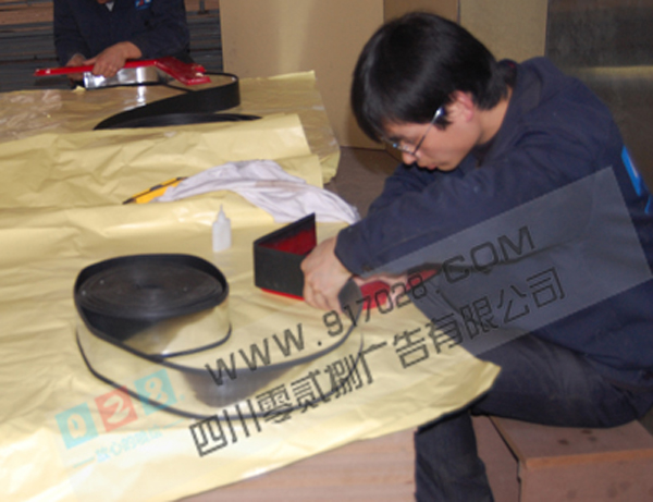 粘接邊條:本公司技術(shù)人員正在使用優(yōu)質(zhì)材料制作吸塑字邊條。