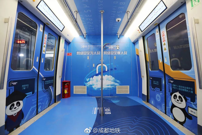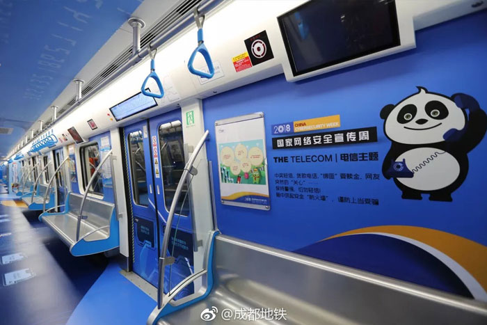 成都軌道交通集團相關負責人表示,該主題列車是全國第一趟網絡安全列車。“之所以選擇在地鐵上做這樣的主題宣傳活動,也是瞧準了地鐵是市民常選的出行方式,可利用地鐵人流量大、傳播快、受眾廣的特點,通過對車廂進行創意布置和設計來進行知識科普,以此來提高市民網絡安全技能。