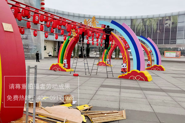為烘托春節氛圍,突出中國傳統節日的喜氣,達到歡樂祥和的節日氛圍效果,通常在新年來臨之際景區都會在入口處以及景區內部環境進行春節氛圍布置。
