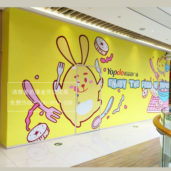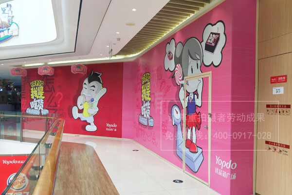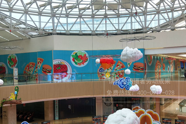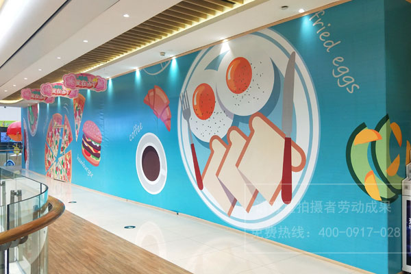 購物中心咖啡廳裝修施工圍墻打圍噴繪廣告畫面制作安裝