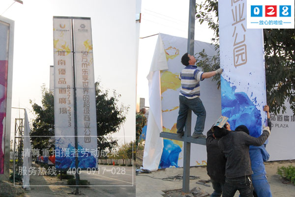 雙流海棠灣房地產(chǎn)項目燈桿道旗制作安裝