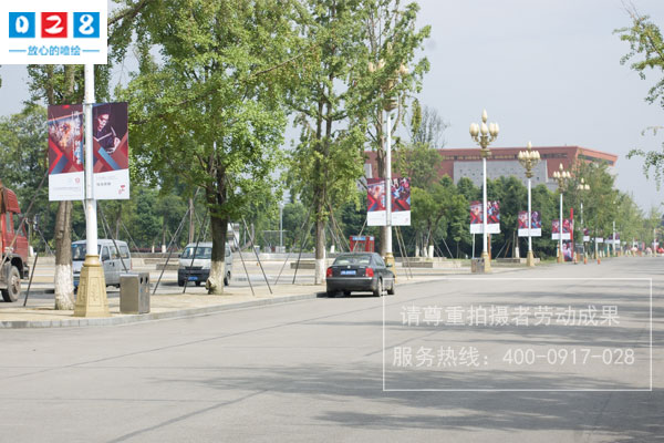 成都非遺博覽園燈桿道旗廣告制作安裝
