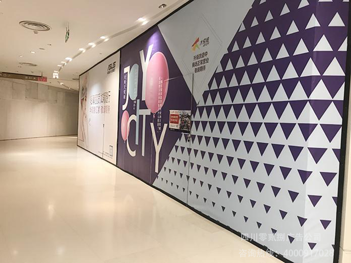 普遍情況下商場圍擋采用的都是噴繪布這類材質,畫面都是統一的商家自己設定或是商場統一設定的。四川零貳捌廣告公司歡迎您的來圖定制。