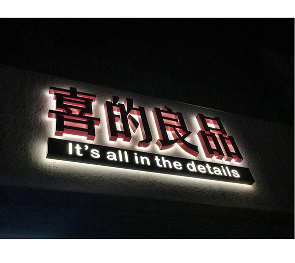什么是背發光字:背發光字是指把一種光源體安裝在立體字殼里面的一種向字體的背對面打光的一類發光字。這類發光字不僅顏色多種多樣,而且它所折射出來的光線是非常的柔和不刺眼的,也是非常吸引人們的視覺的,又因為自身材質的特性,所以這類發光字的使用壽命也是比較長久的,因此在現下也是非常流行的,比較受歡迎的一類字體產品。