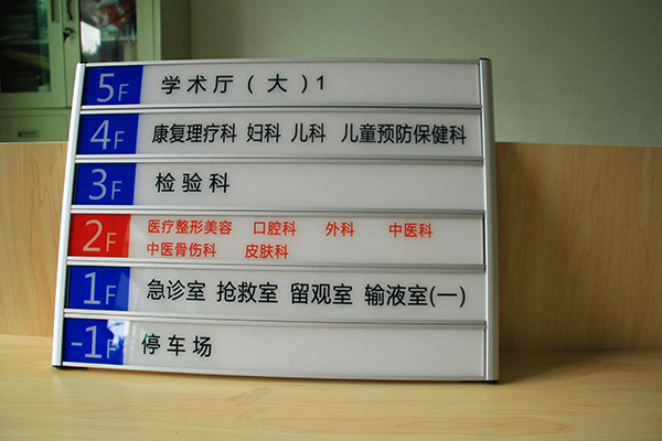 隨著社會(huì)的不斷發(fā)展,人們生活水平的不斷提高,醫(yī)院作為一個(gè)比較特殊的服務(wù)機(jī)構(gòu),在當(dāng)下的一個(gè)不斷創(chuàng)新的社會(huì)環(huán)境中,群眾們對(duì)于醫(yī)院的一個(gè)整體環(huán)境也在不斷地提高需求。醫(yī)院這一機(jī)構(gòu)作為一所比較特殊的公共場所,它所組成的架構(gòu)是比較復(fù)雜的,醫(yī)院內(nèi)部構(gòu)造多種多樣,線路也是復(fù)雜多變。一般比較大型的醫(yī)院都是幾層樓起步,并且每層樓都有許多的科室以及病房等。所以,為了便于人們的生活而制作出來了一套較好的醫(yī)療標(biāo)識(shí)標(biāo)牌系統(tǒng)。