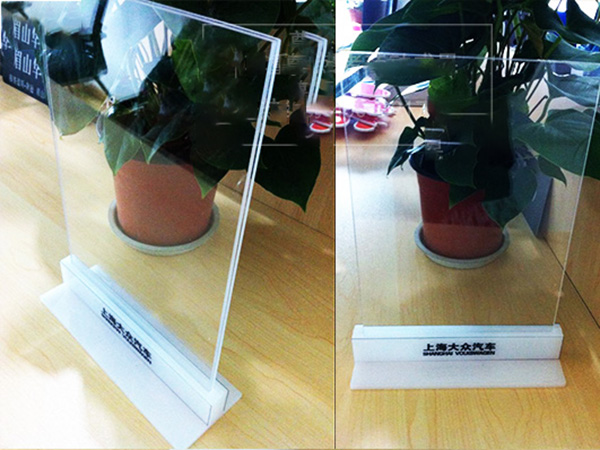 那么,臺卡桌牌是什么材質(zhì)做的呢?一般制作臺卡桌牌的材質(zhì)是有機(jī)玻璃或者是亞克力板材質(zhì)。有機(jī)玻璃和亞克力板材質(zhì)都有透明型的,所以會比較有利于透明度,也比較受客戶的歡迎,亞克力材質(zhì)能夠隨意彎折,制造出多種形狀,也可以制作雙層,以便中間插縫處插入圖紙等。